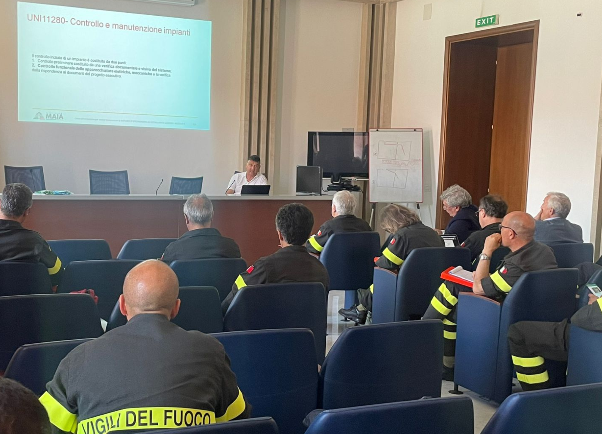 A conclusione della sessione di formazione, nella mattinata di oggi si è tenuta anche una simulazione della prova d’esame a cura del C.N.VV.F. Il Direttore Centrale della Prevenzione e Sicurezza Tecnica, ing. Eros Mannino, inoltre, ha fornito maggiori indicazioni sullo svolgimento degli esami di qualifica dei TMA e alcuni approfondimenti sulla gestione dei casi della norma transitoria.